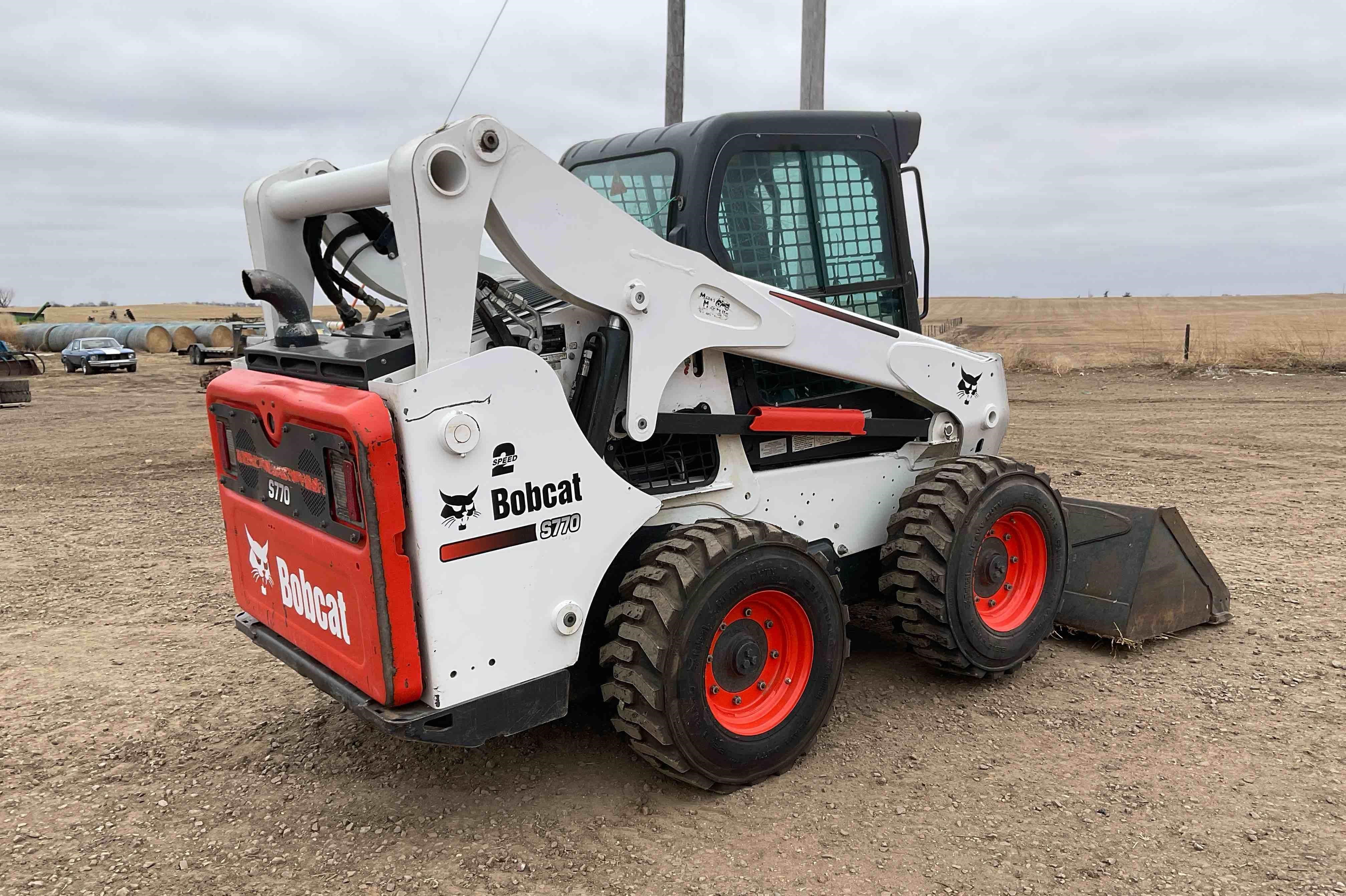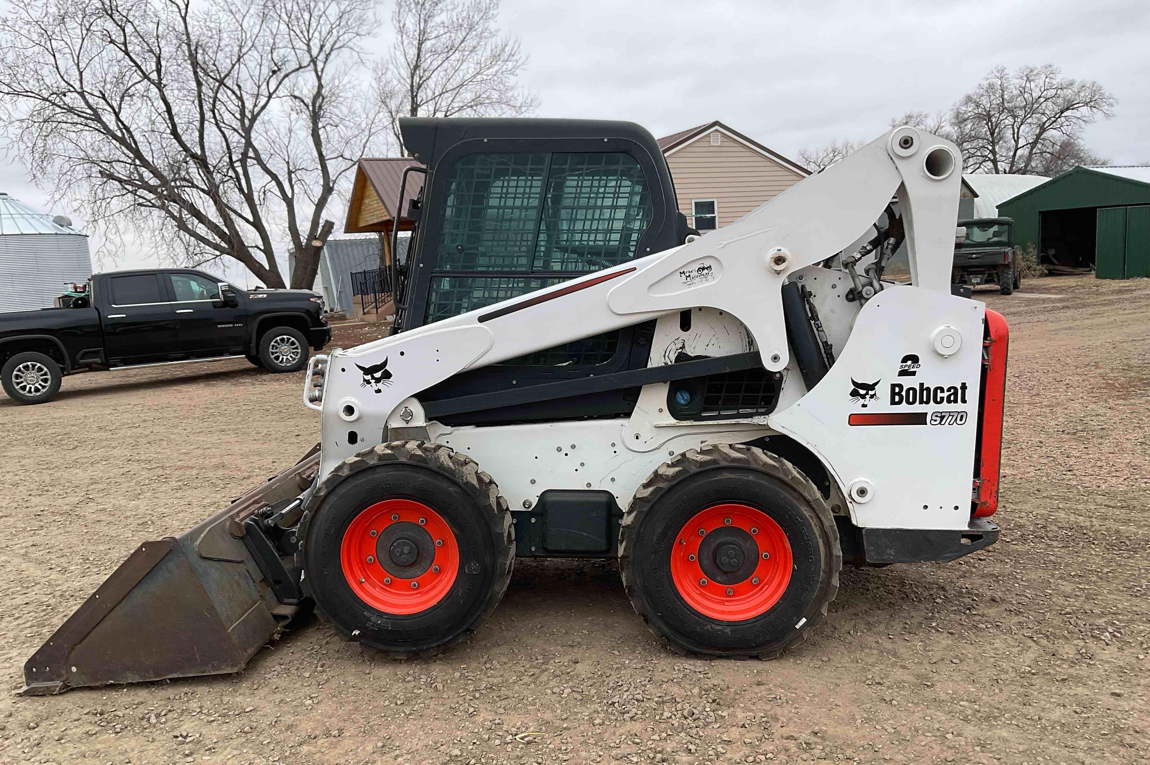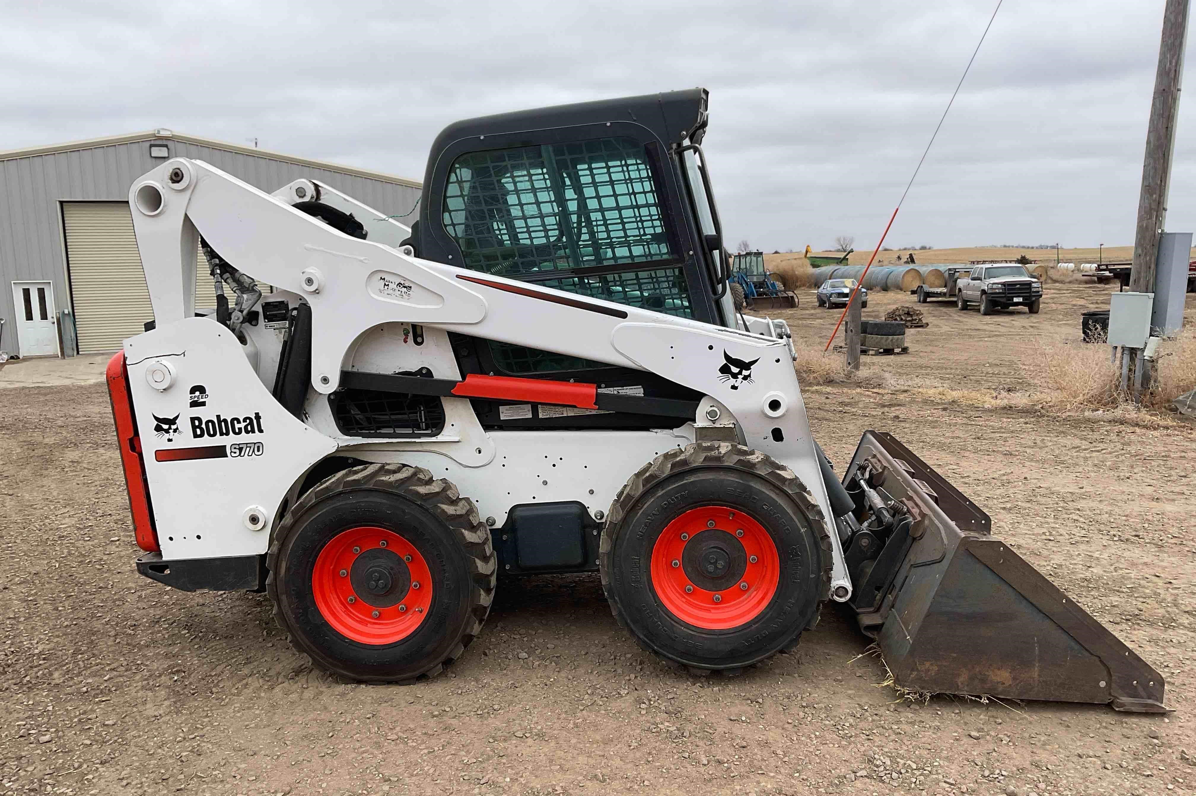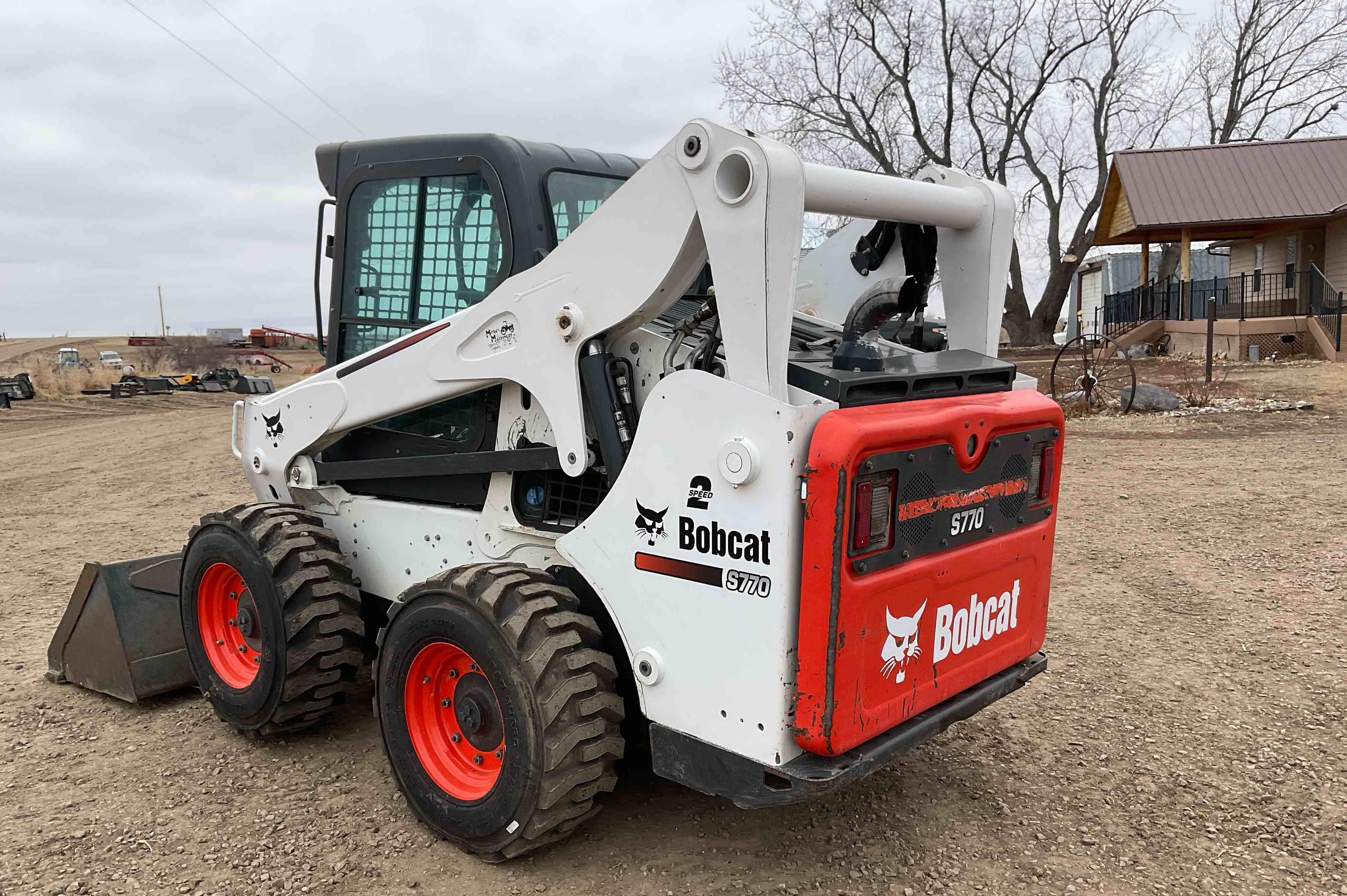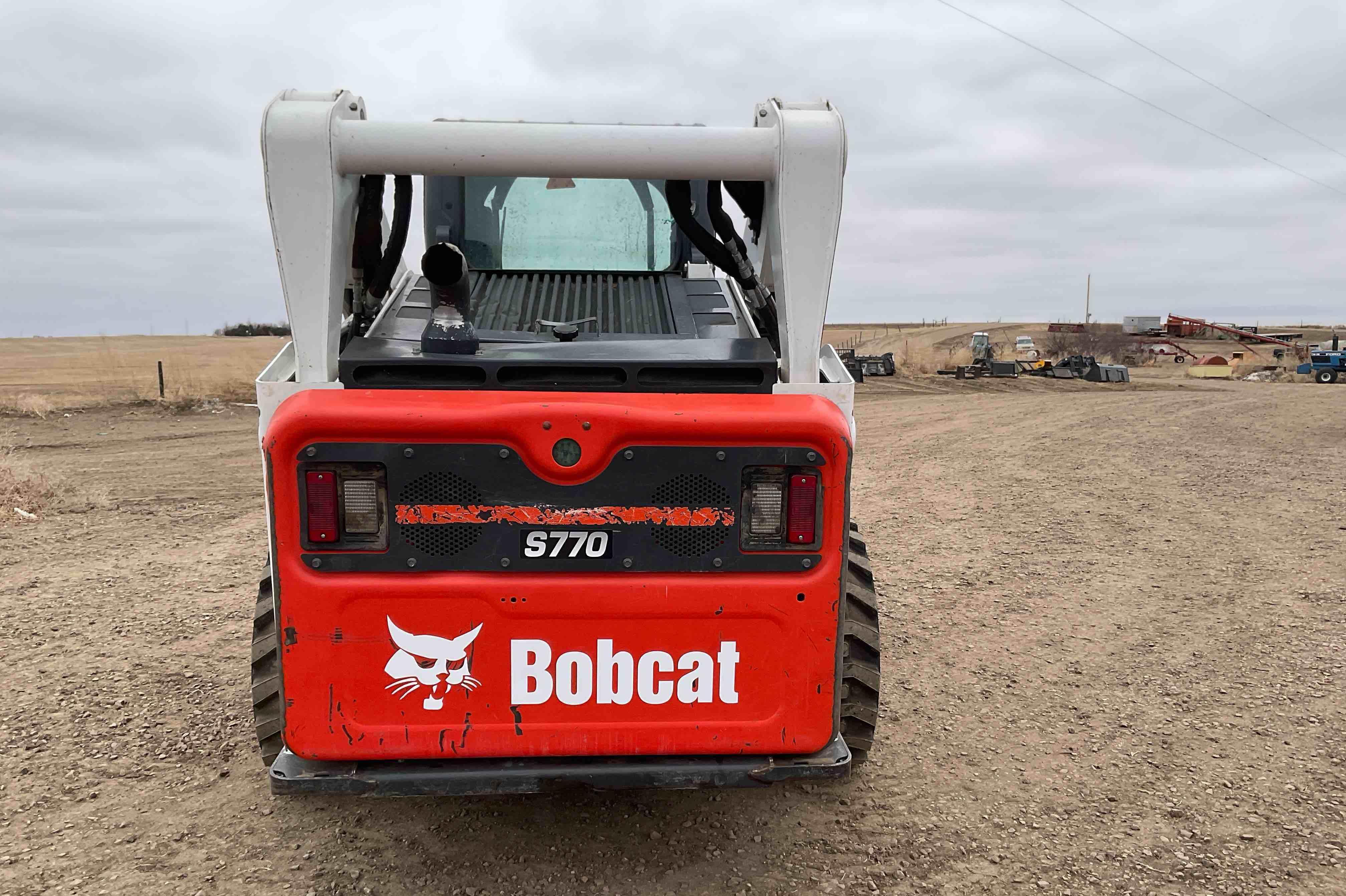 2019 Bobcat S770 Skid Steer, SN: AT5A13293, Bobcat 4-Cylinder Diesel, Water Cooled Engine, 2-Speed Hydrostatic Transmission, 6.5' Bucket W/Bolt-On Cutting Edge, Quick Attach, High Flow Hydraulics, Enclosed Cab, Joystick Control, Digital Display, Heater, A/C, Radio, 12-16.5 Tires
