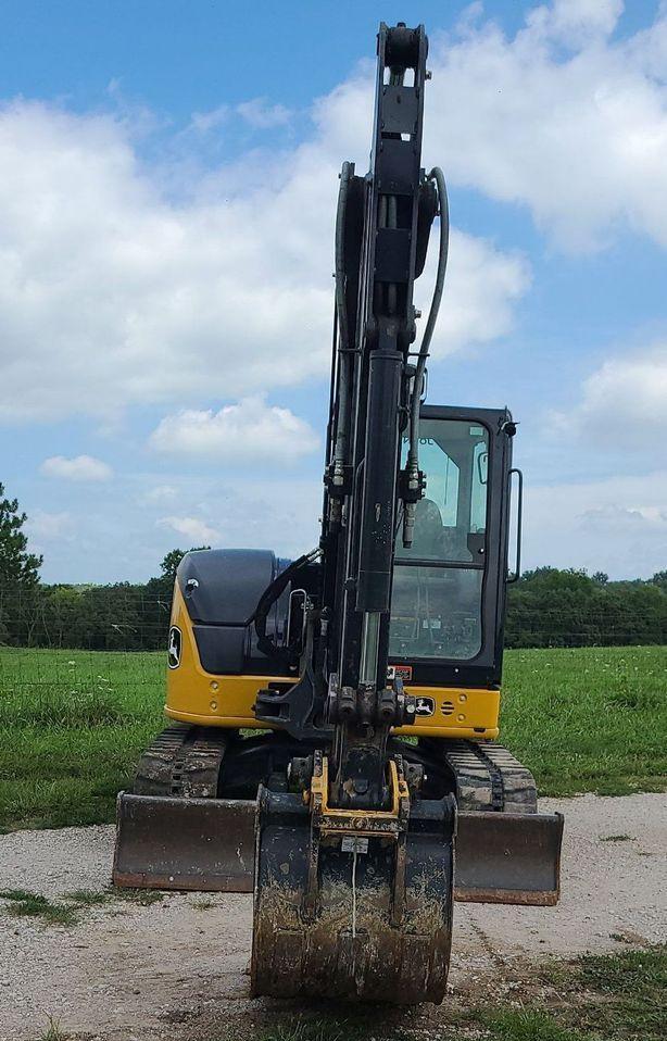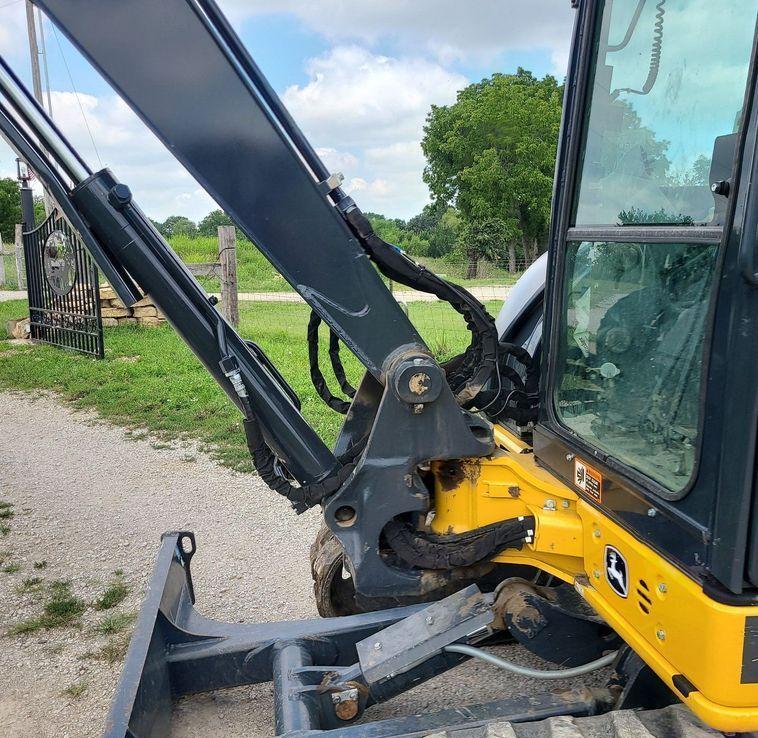 Features: Auxiliary hydraulics, two-way backfill blade (width: 78"), boom swing stick (stick length: 72"), hydraulic quick coupler, hydraulic thumb