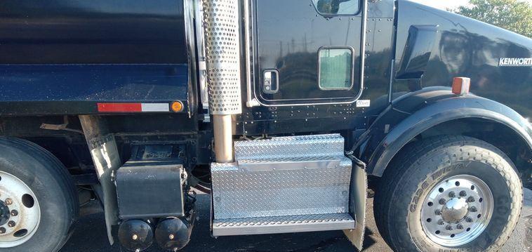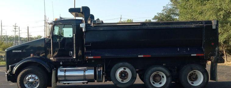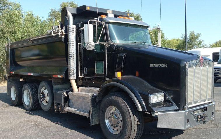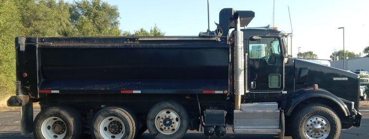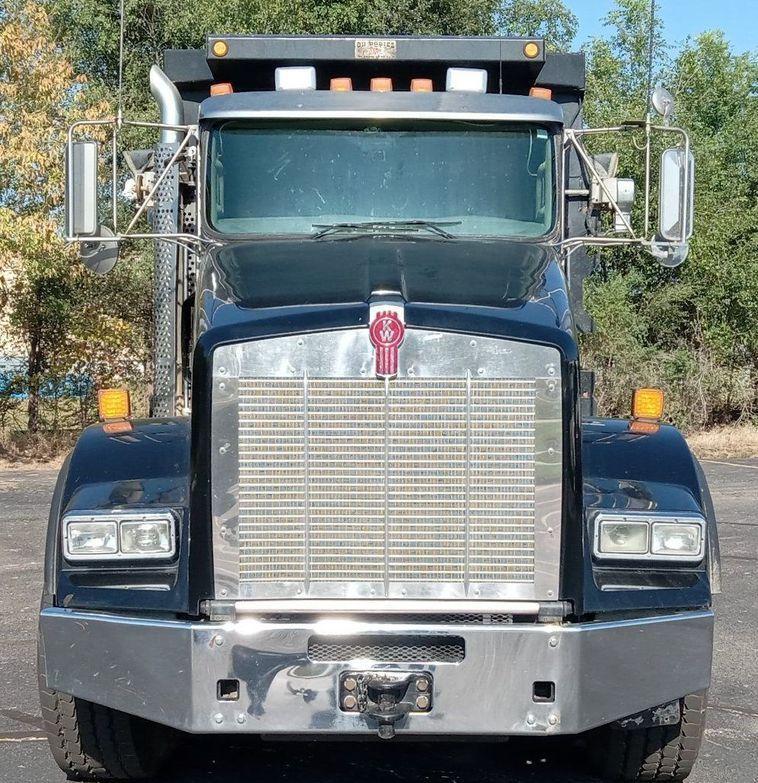 The 2012 Kenworth T800 dump truck has 301,213 miles on the odometer and 15,531 hours on the meter. It is powered by a Paccar engine with a 12.9L displacement and 6 cylinders, running on diesel fuel and equipped with an engine brake.