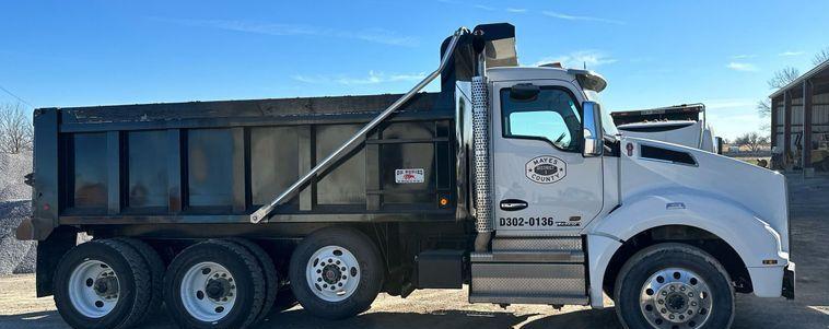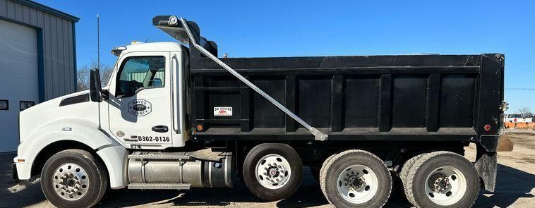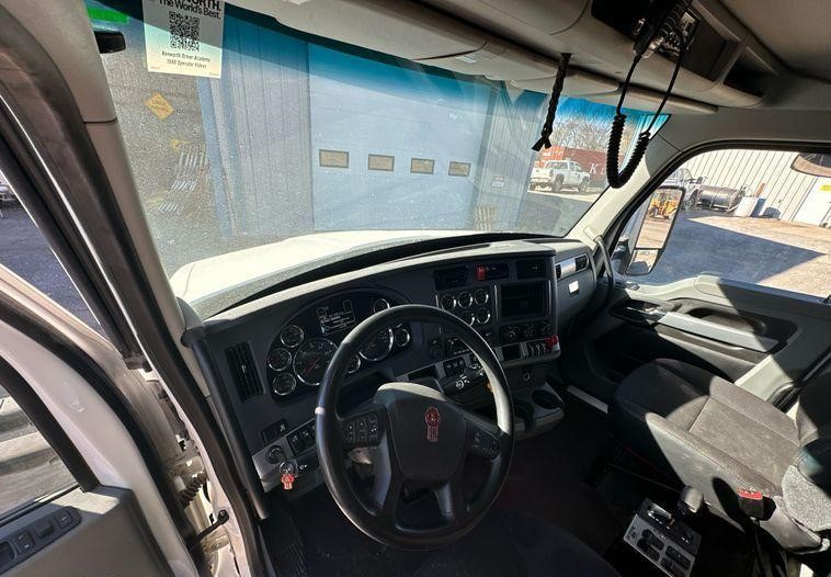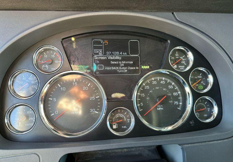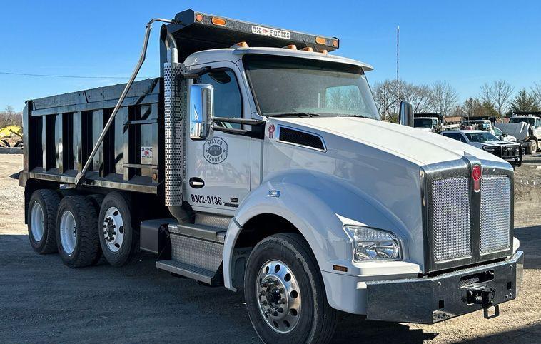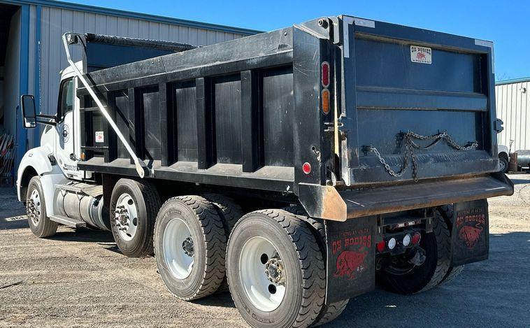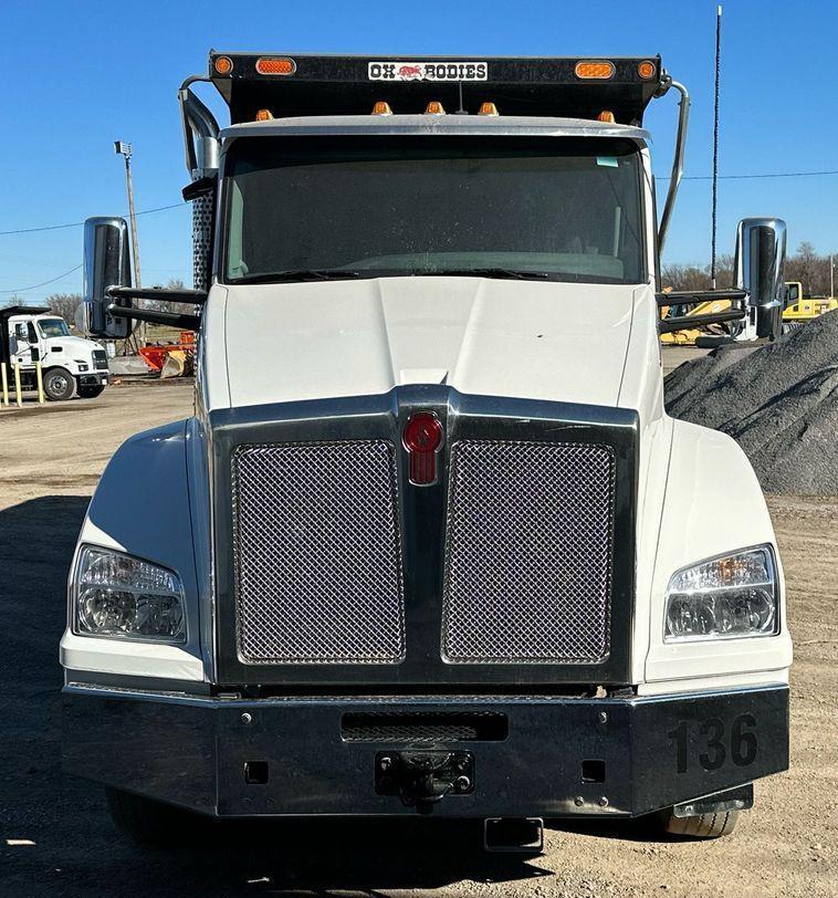 The 2021 Kenworth T880 dump truck has 37,126 miles on the odometer and is powered by a 12.9-liter, 6-cylinder Paccar MX-13 diesel engine. It features an Eaton Fuller Ultrashift automated manual transmission.
