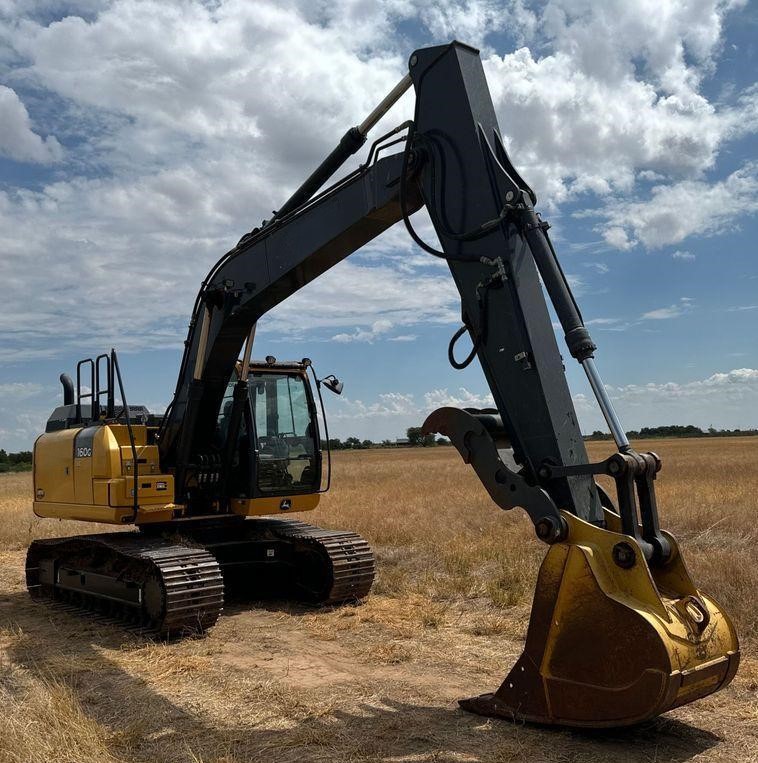 The 2019 John Deere 160G excavator combines low hours and reliable performance, making it an excellent choice for a variety of construction and excavation projects. With just 1,654 hours on the meter, it is powered by a robust John Deere diesel engine with four cylinders, paired with a hydrostatic transmission featuring two-speed travel for smooth and efficient operation. The enclosed cab offers a comfortable operator environment with air conditioning, heat, and a pattern changer for versatile control. This model is equipped with auxiliary hydraulics, counterweights, a standard boom, and a 10-foot 6-inch stick. A hydraulic thumb and a 34-inch bucket with five teeth provide precise material handling capabilities. The machine rides on 24-inch steel tracks with triple grouser pads, ensuring excellent stability and traction across diverse terrains.